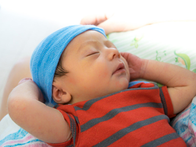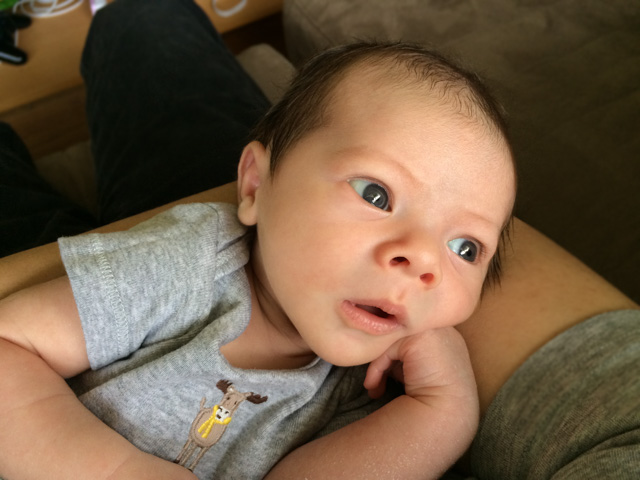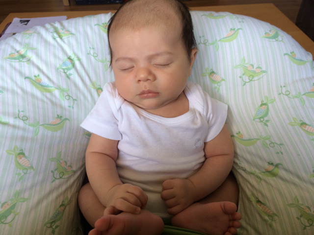 By five weeks he was able to scoot himself into a different direction in his crib.