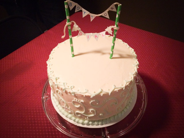An envelope containing the gender was given to us by the doctor. We did not open the envelope. Instead, we gave it to Rebecca Taddei (thank you!) who would be making the reveal cake. We would not know the gender for over a month.
